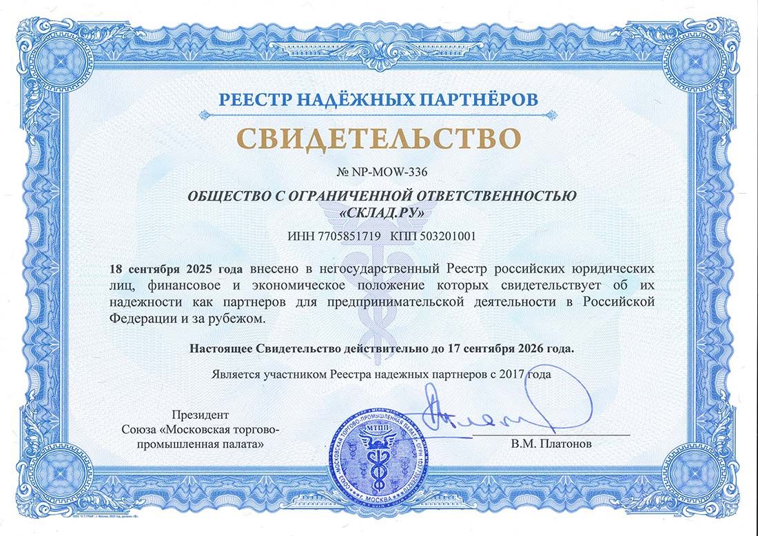 Свидетельство Торгово-промышленной палаты (2025-2026)