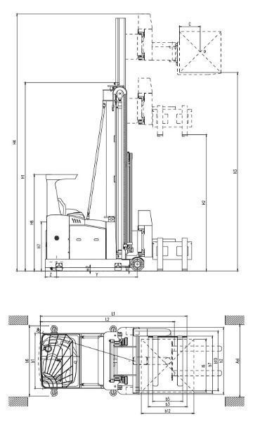 Самоходный узкопроходный электроштабелер GROS OPD15 можно сравнить с ричтраком, мачта которого также имеет подвижность, но вилы у ричтрака выдвигаются только вперед.