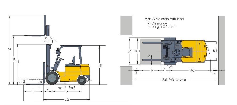 Минимальная ширина проезда между стеллажами при работе с поддонами 1000х1200 мм, хват поперёк (Ast), мм